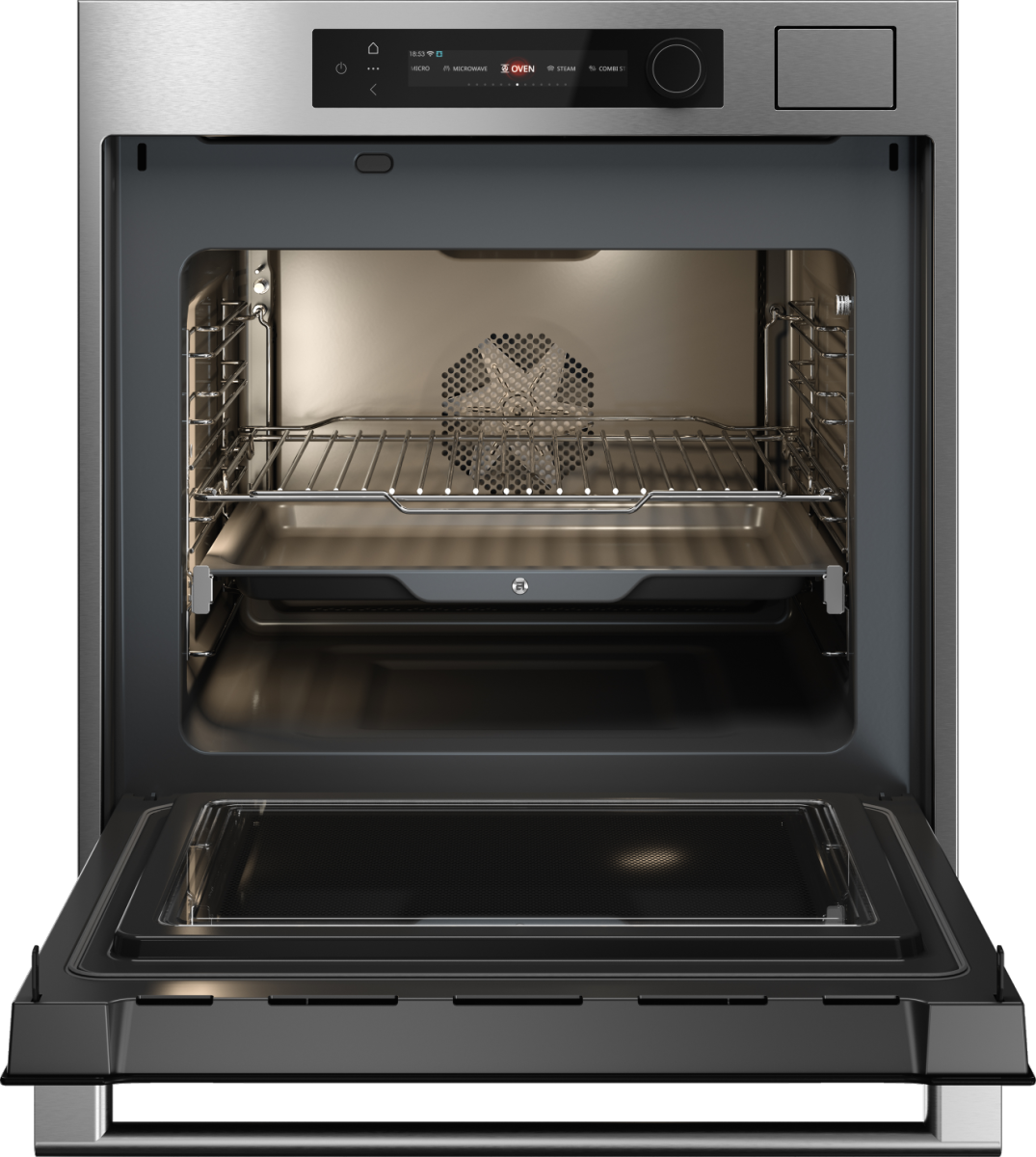 Этот духовой шкаф объединяет классические нагревы, микроволновую технологию и пар, обеспечивая гибкость, точность и удобство в ежедневном использовании — от быстрых разогревов до сложных кулинарных рецептов.