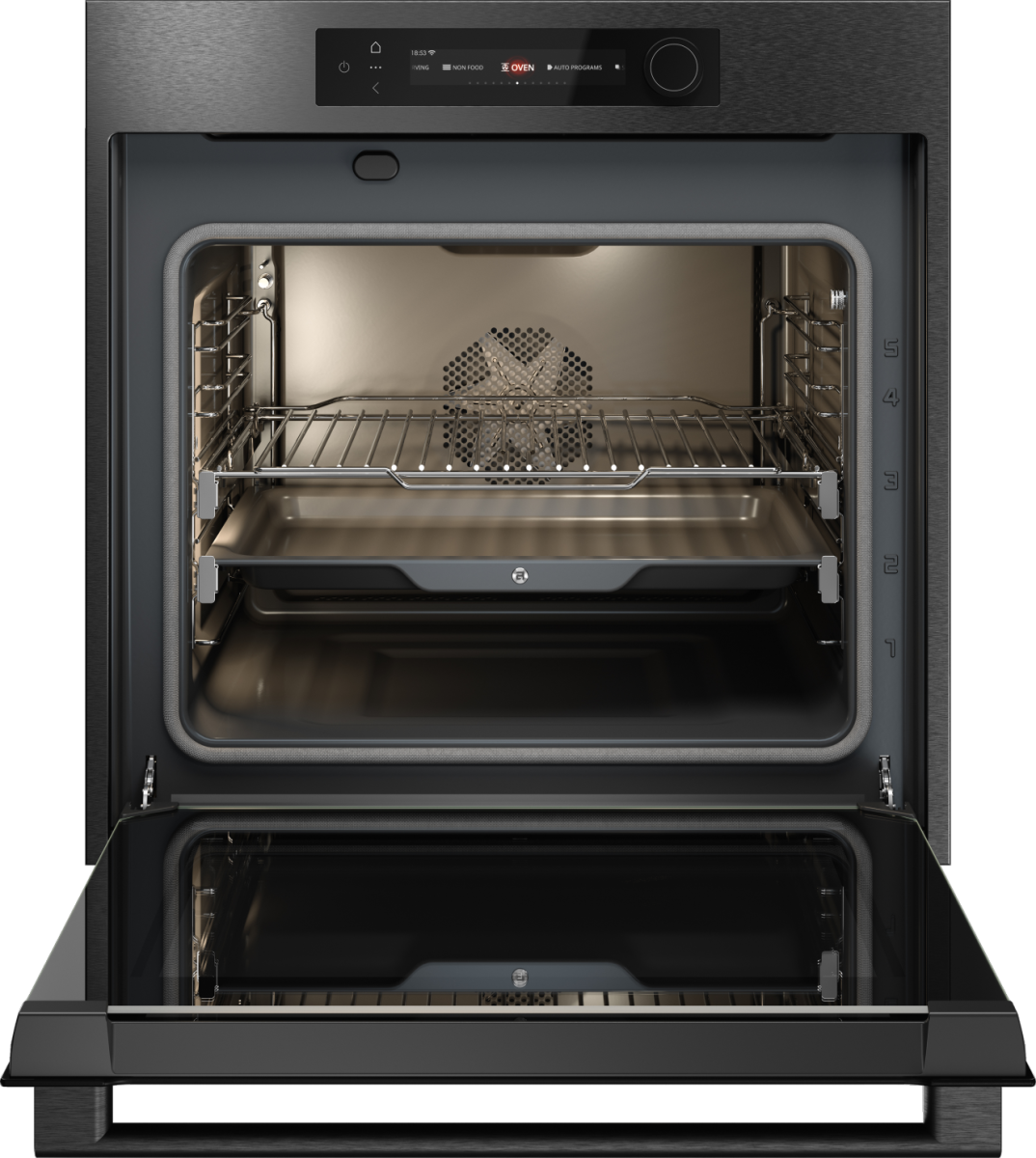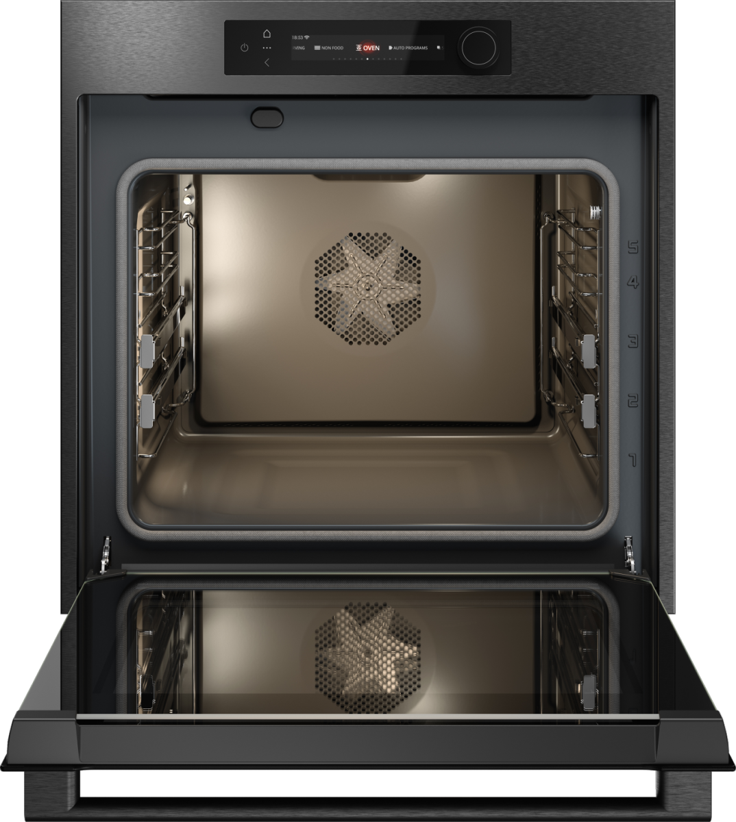 Комфорт и безопасность продуманы до мелочей. Охлаждаемая дверца с четырьмя стеклами, защита от детей и вентилятор охлаждения обеспечивают безопасную эксплуатацию. Плавное открывание и закрывание двери, телескопические направляющие на двух уровнях, двусторонняя подсветка камеры и цветной TFT-дисплей делают управление интуитивным и удобным даже при активном использовании.