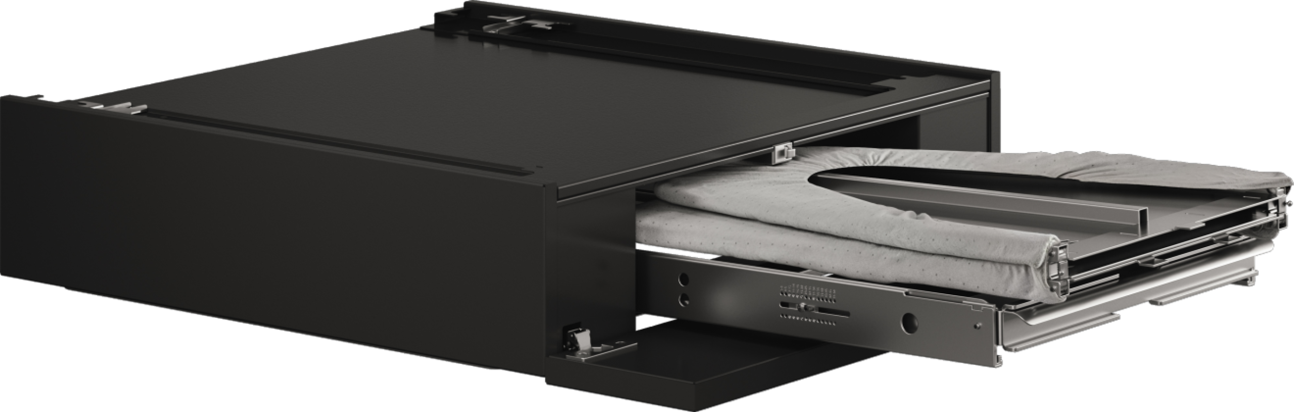 Прочный каркас и плавный выдвижной механизм рассчитаны на регулярную эксплуатацию и комфортную глажку одежды различного типа. Asko HI150G избавляет от необходимости хранить отдельную напольную гладильную доску, помогая поддерживать порядок и делая ежедневный уход за вещами более удобным и организованным.